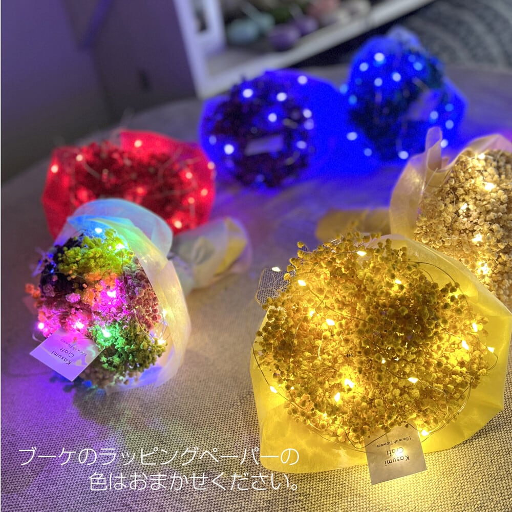 サプライズブーケプリザーブドフラワーかすみそうLED花材花束ボリューム