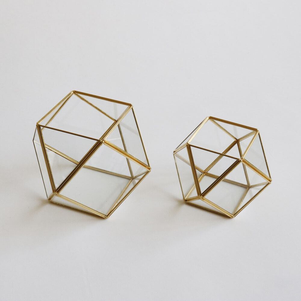 BRASSフレームで出来た、飾っていて幻想的に見えるようデザインのガラスケースです。