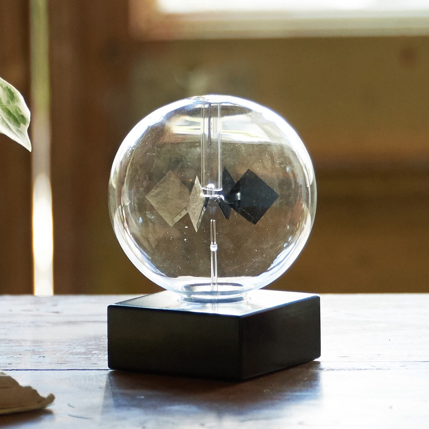 窓辺でくるくる回ります。晴れた日に窓辺に置いておけば、中の羽が軽やかにくるくる回ります。原理はこむずかしいけれど、見た目はとても軽やか。