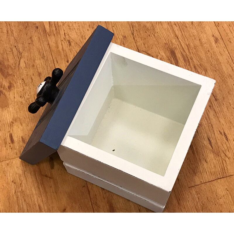 木製でしっかりした作りで蓋に蛇口のついた、かわいらしいボックスです。