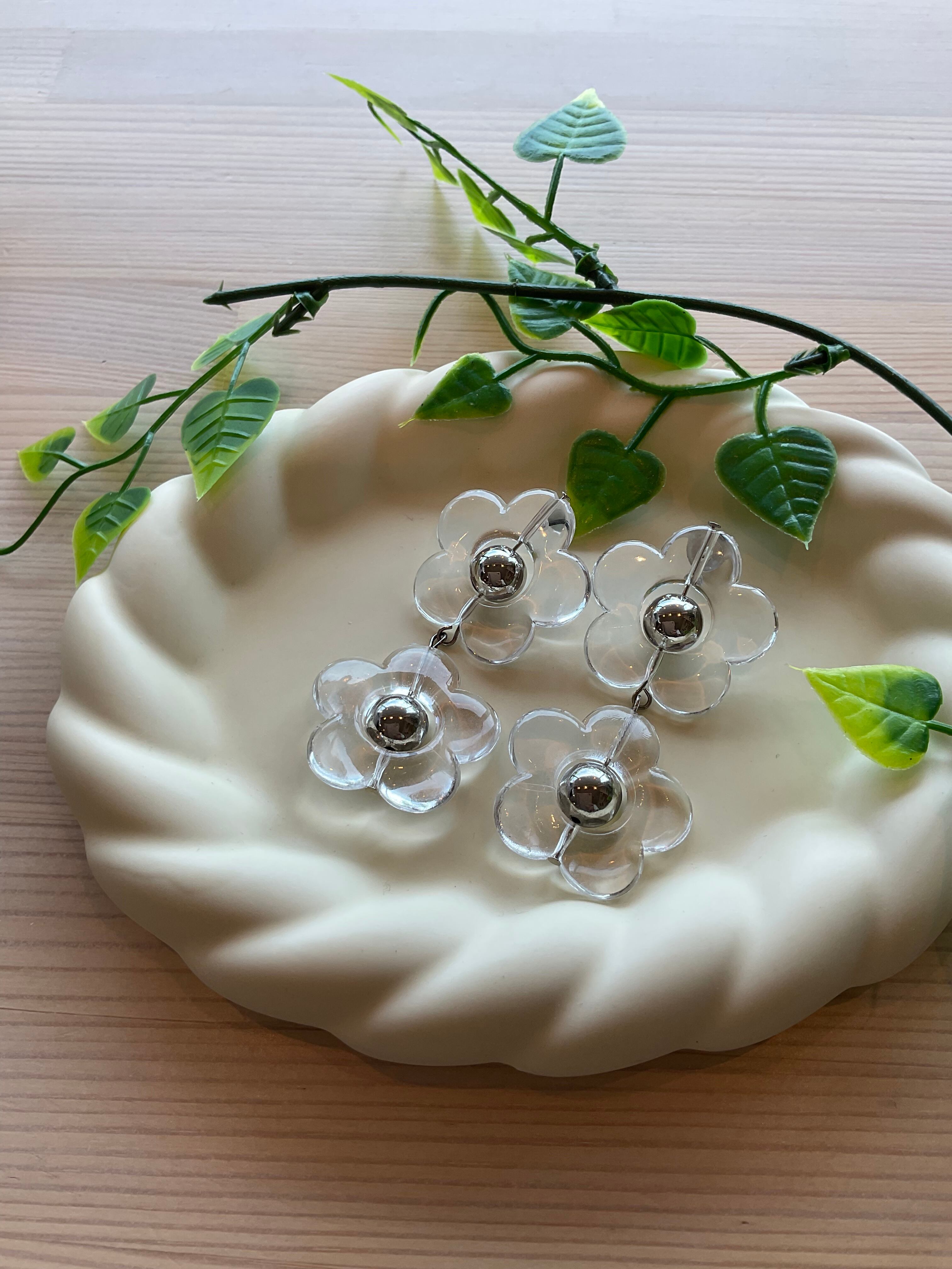 クリアのデイジーが2連になっている可愛らしいピアス。