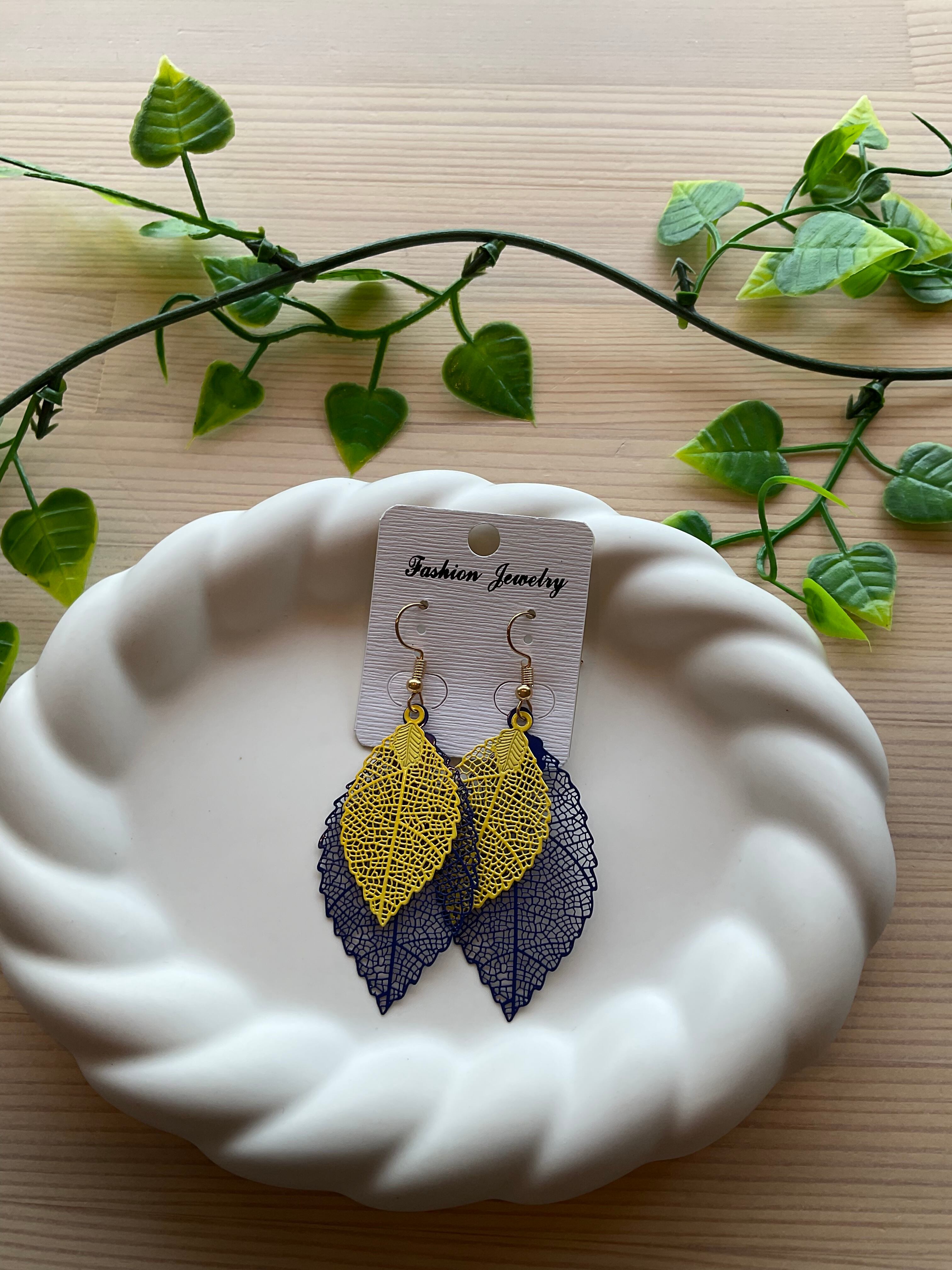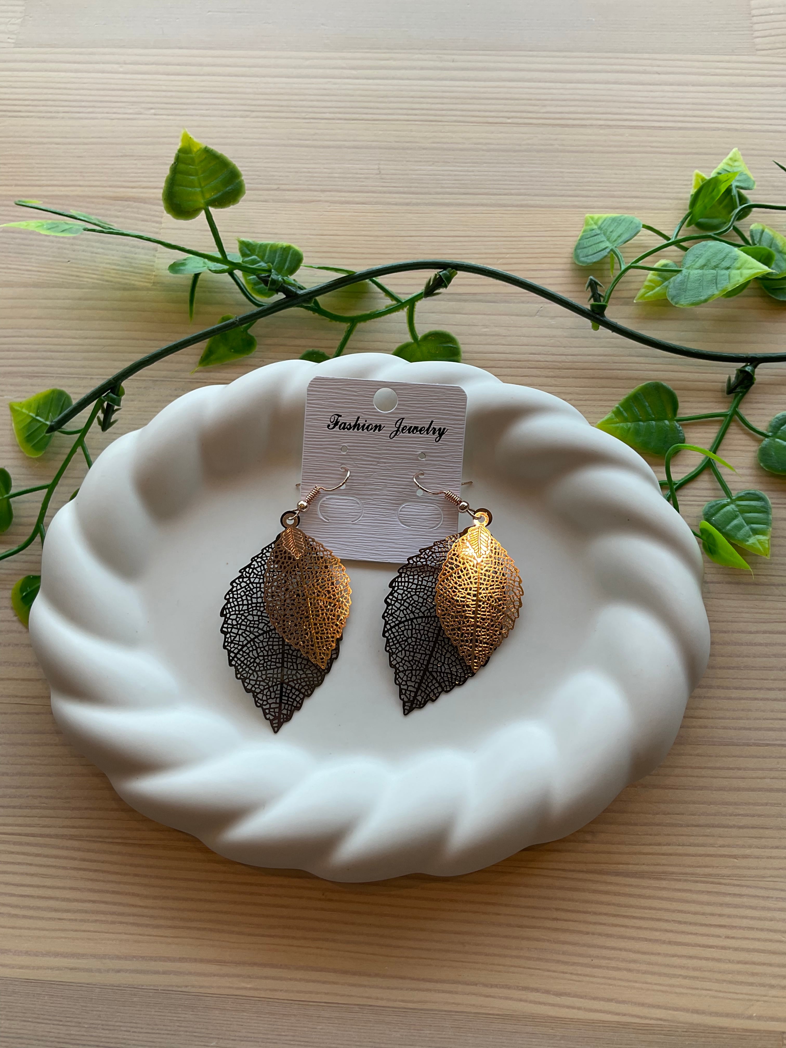 大きさや色が異なる葉っぱが合わさったピアスです。